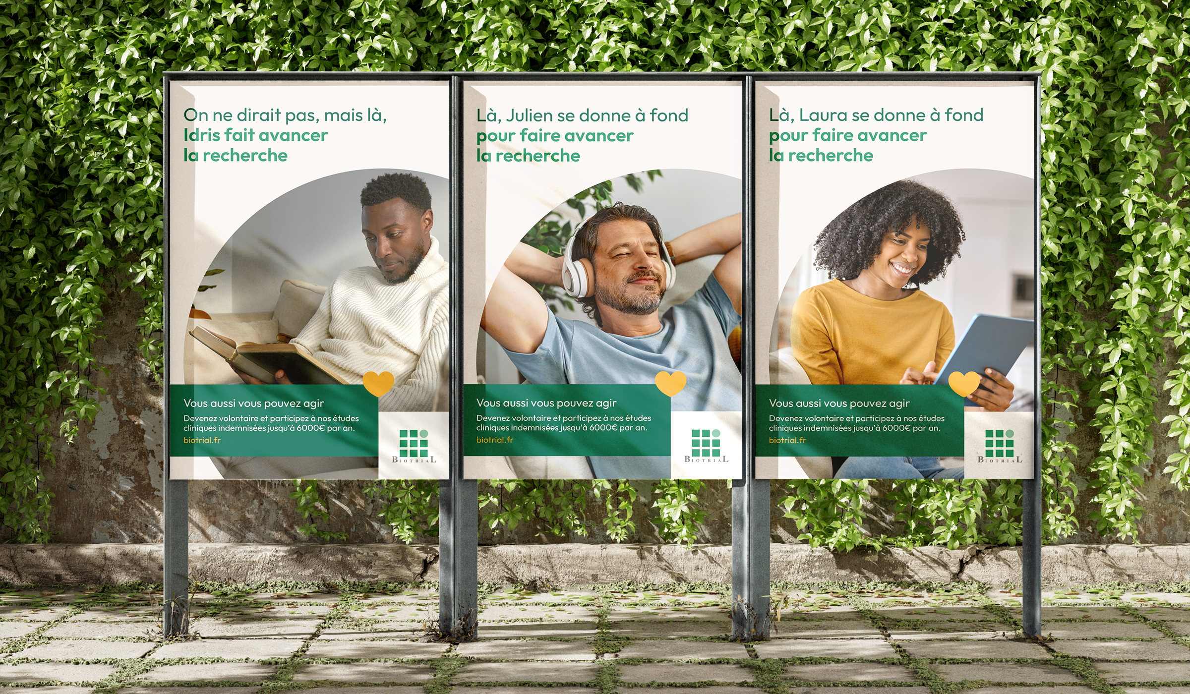 Notre point de départ pour cette campagne de communication était simple : montrer que la recherche clinique concerne tout le monde. Bien sûr que les efforts quotidiens des chercheurs et professionnels de santé chez Biotrial sont primordiaux, mais vous aussi vous pouvez contribuer ! Non seulement ça, mais vous pouvez le faire en venant comme vous êtes. Nous avons choisi de montrer des femmes et des hommes ordinaires, qui, par leur participation, contribuent concrètement à faire avancer la science.